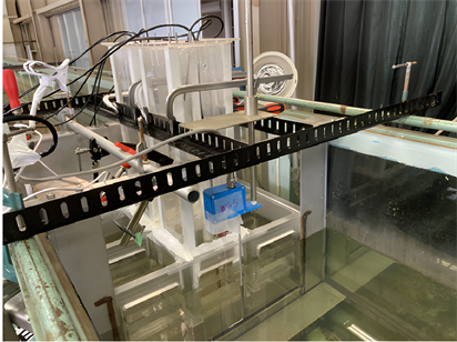 Figure 6. Wave gauge mounting position and suction pump set-up for raising the water surface.