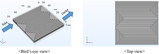 In this study, the 3D numerical simulation has been conducted using a multi-physics software COMSOL Multiphysics. This software has the simulation code for PEFC composed of the continuity equation, the Brinkman equation for a momentum transfer, the Maxwell-Stefan equation for a diffusion transfer and Butler-Volmer equation for an electrochemical reaction. This simulation code for PEFC has been validated well by many previous studies [18] [33] [34] .