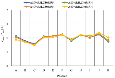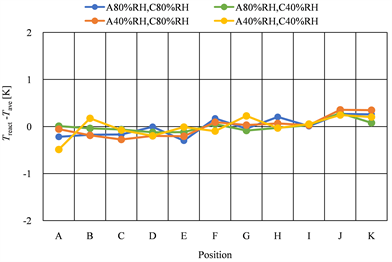 Since the generated heat from the power generation is lower for A40%RH, C40%RH due to the lower performance of O2 reduction reaction [47] , it can be thought that the distribution of Treact for A40%RH, C40%RH is more even.