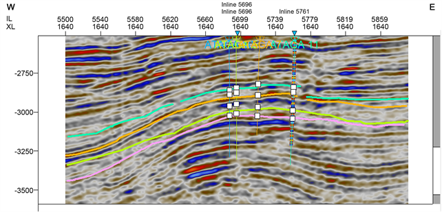 Figure 8. Well to seismic tie displayed on Seismic section.