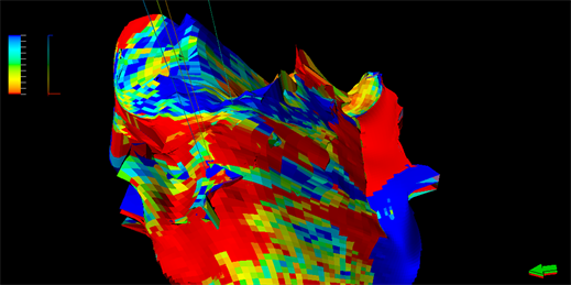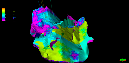 Water Saturation Model: The map reveals that water saturation distribution within the well area of the Ataga field using Sequential Gaussian Simulation algorithm below varies from 0.49 to 0.87. This is indicative of more of water than hydrocarbon (Figure 15).