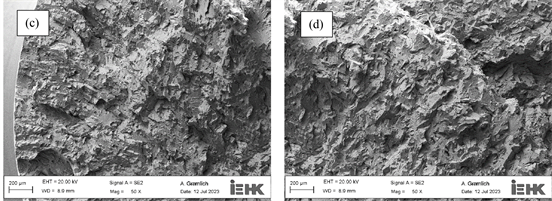 3.5. Surface Fracture of 42CrMo4 under Scanning Electron Microscope (SEM)