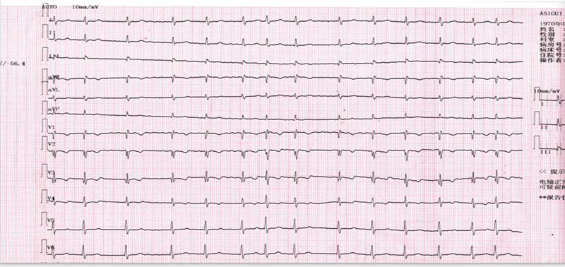 Inscribed an irregular non-sinus rhythm with an average heart rate at 70 cycles per minute; Absent P-waves replaced by baseline tremulation concluding atrial fibrillation (Figure 3).