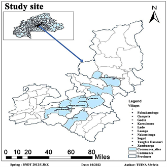 The study was carried out in Burkina Faso, which has a Sudano-Sahelian climate characterized by a tropical climate with alternating seasons and high interannual and spacio-temporal variability in rainfall [25] . It covered two agroclimatic areas (Figure 1). These are the north Sudanian area with annual rainfall ranging between 700 mm and 900 mm and the sub-Sahelian area (500 mm to 700 mm). In all, ten villages were selected based on the presence of several types of sorghum in these localities two (2) were located in the sub-Sahelian area and eight (8) in the north Sudanian area. An ethnobotanical survey was carried out in the ten villages from October to December 2020.
