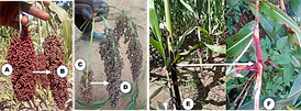 stage. The grains have a sweet flavour, an easy shelling type with generally loose panicles (Figure 2(B)). A major characteristic of this group is its earliness. The majority (86.5%) of cultivars of this sorghum have no aristation, wax and have fewer aerial tillers.
