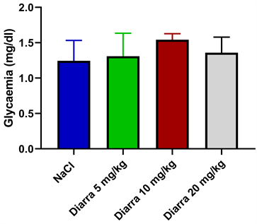 Figure 5. Glycaemia of rats after 28 days of exposure to the “Diarra” sample in a single daily administration.
