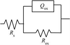 the passive metallic material is hindered by the presence of a surface oxide film that acts as a barrier-type compact layer [13] [30] [31] . The equivalent circuit consists of a series combination of the aggressive environment resistance, Rs, and a single parallel constant phase element/resistor pair, Qox/Rox, describing the properties of the passive film formed on the investigate materials, respectively the capacitance and resistance of the compact oxide layer.