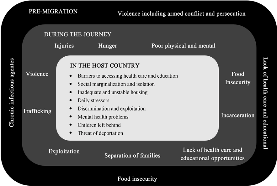 In the migratory process, children and adolescents unaccompanied by a caregiver face particular risks, including being exposed frequently to discrimination, marginalization, institutionalization, and social exclusion (WHO, 2018) . The term “unaccompanied minors” refers to persons under 18 years of age who are separated from their families while moving to the host country and seeking asylum. The World Health Organization outlined the unaccompanied minor refugees and asylum seekers’ risk factors for health problems and poor well-being during the different phases of migration (Figure 1).