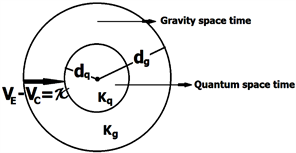 As shown in Figure 2, this diameter of outer space time contracted to another space time. The outer space time diameter “d” is different and inner space time diameter “d” is different. But from the basic principle, quantum mechanics and general relativity must be same. Outer space time represents general relativity and inner represents quantum mechanics. Both must be same. So, parameters will be changed to synchronize both the space times.