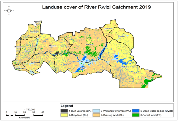 A trend of increase in built-up area, forestland and open water bodies is expected by 2030 and 2040 while wetland and grazing land are projected to decrease. In contrast, cropland is projected to decrease by 2030 and rise again by 2040. The projected trends threaten food security, river hydrology and soil quality in the catchment. Thus, management and planning should be oriented towards minimizing the likely adverse effects of this trend to the river and livelihood of catchment inhabitants. The major drivers of change in Land Use Land Cover were socio economic due to population pressure followed by hydro-climatic factors and Land Use Land Cover Change accounted for more variation in river flow than climate variability. Therefore the extent of enforcement of sustainable land management practices in the Rwizi catchment should be an area for further research.