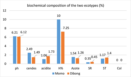 Figure 1. Biochemical composition of the two ecotypes of fonio momo and dibong.