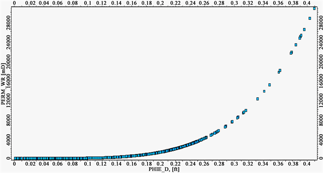 Figure 7. Permeability Verse Effective Porosity Cross Plot for WELL_2X.