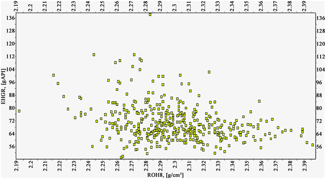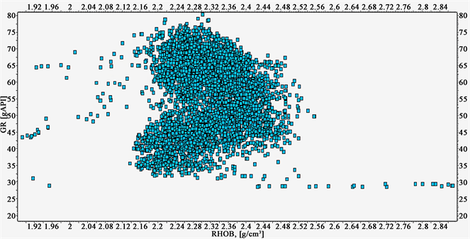 Figure 8. Gamma ray verse bulk density cross plot for WELL_2X.