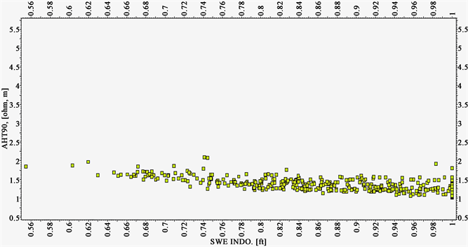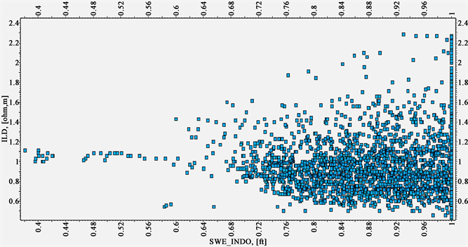 Figure 9. Deep resistivity verse water saturation cross plot for WELL_2X.