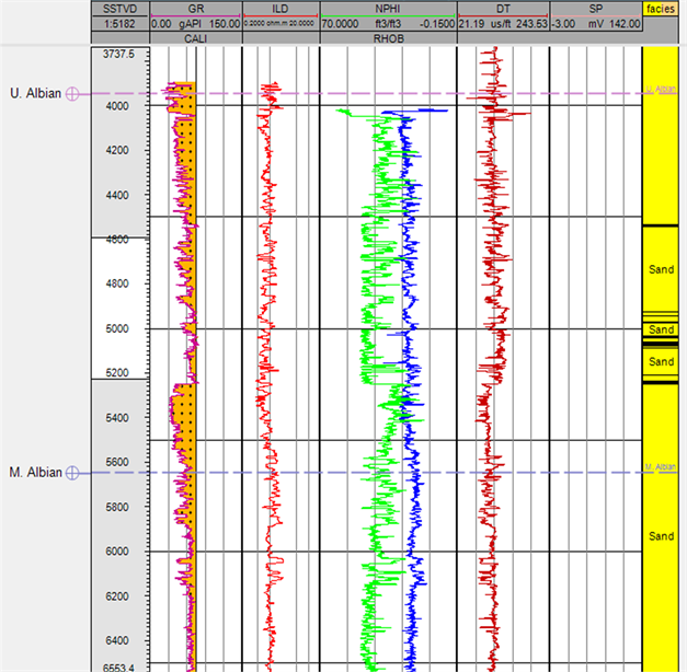 The data was put into a format (.txt) acceptable by Petrel, a software provided by Schlumberger to help accurately estimate the set target for this study. The data was imported into Petrel and the appropriate ranges of the said parameters were set to convert the digitized well logging data into log curves (Figure 1) to help identify, analyse and estimate the petrophysical properties of the wells under study.