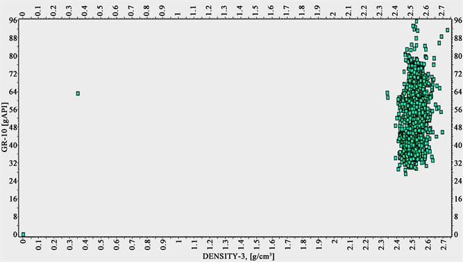 Figure 13. Gamma ray verse bulk density cross plot for WELL_3X.
