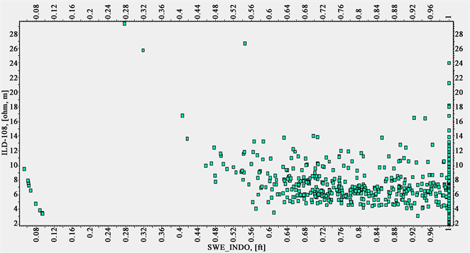 Figure 14. Deep resistivity verse water saturation cross plot for WELL_3X.
