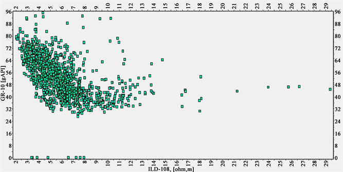 Figure 15. Gamma ray verse deep resistivity cross plot for WELL_3X.