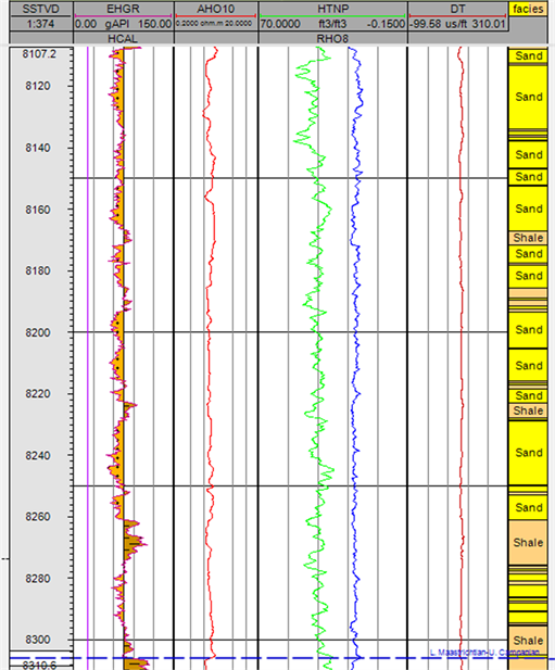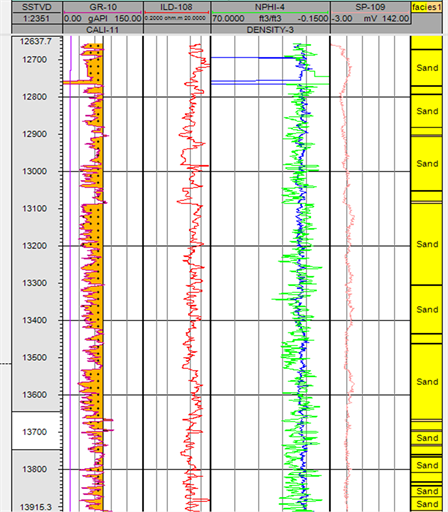 It was required to read or choose log values in the various zones of interest as well as other crucial areas, including the shale or water-bearing zones, in order to conduct a log analysis. To turn the log into a series of distinct beds, specific log readings were selected from the vertical lines at the peaks and troughs and the horizontal lines drawn at each bed border at the inflection points on each curve.