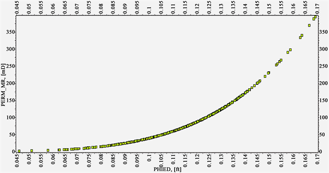 Figure 2. Permeability verse effective porosity cross plot for WELL_1X.
