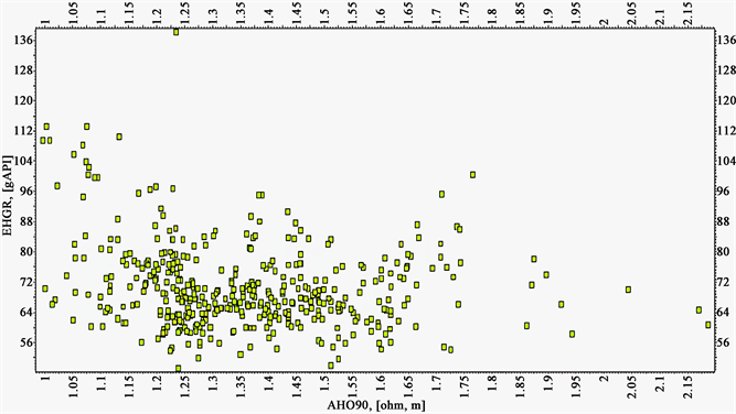 Figure 10. Gamma ray verse deep resistivity cross plot for WELL_2X.