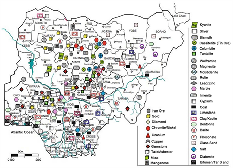 The principal minerals and metals mined in Nigeria: