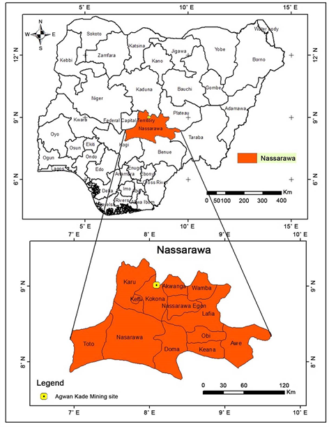 Figure 2. Geographic location of Agwan Kade Mining Site at Nassarawa State in Nigeria. Map credit: authors.