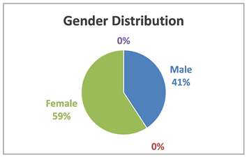 In order to ensure the inclusivity and breadth of the sample, the study deliberately recruited individuals with diverse demographic characteristics, encompassing various genders, age groups, educational backgrounds, and income levels. This comprehensive approach to participant selection was instrumental in obtaining a holistic understanding of consumer attitudes and behaviors regarding green purchasing. The respondents comprised 41% male and 59% female participants, as depicted in Figure 1.