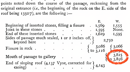 From that point, moving south along Subterranean Chamber horizontal passage floor to the entrance into the Subterranean Chamber, it is 346” (8.79 meters). See Figure 6, where the 346” length recorded by Petrie (Petrie, 1990) is circled.