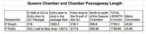Figure 16. Queens Chamber and passage lengths from Smyth and Petrie.