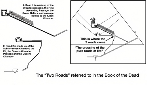 The discussion includes new understandings gained by the author in pursuit of this inquiry, including the findings related to the upper and lower mouths of the Well Shaft, and the division of all the various Pyramid passages into two “roads”, as referenced in the Book of the Dead.