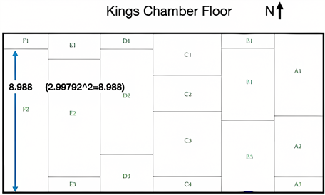 Figure 22. Kings Chamber plan view of various 8 meter measurements.