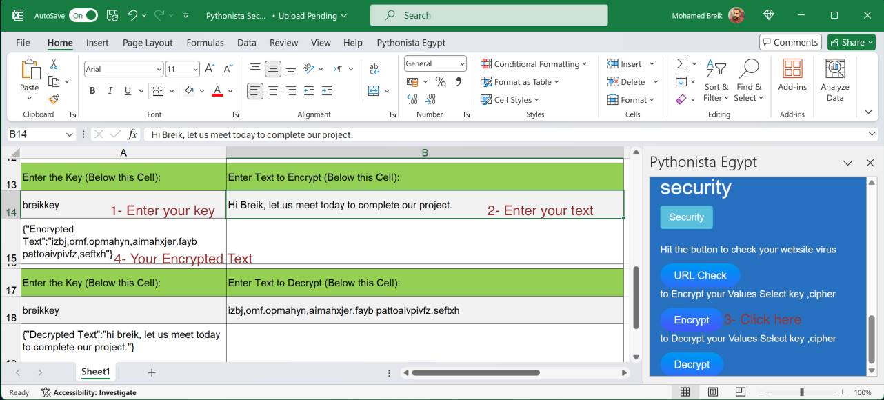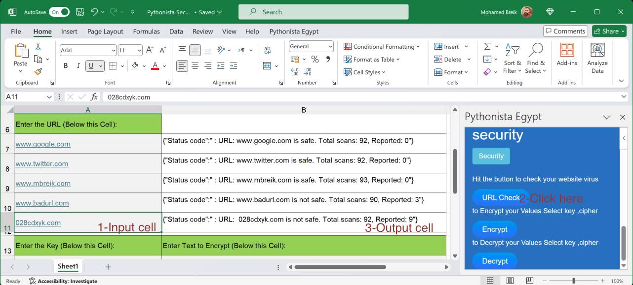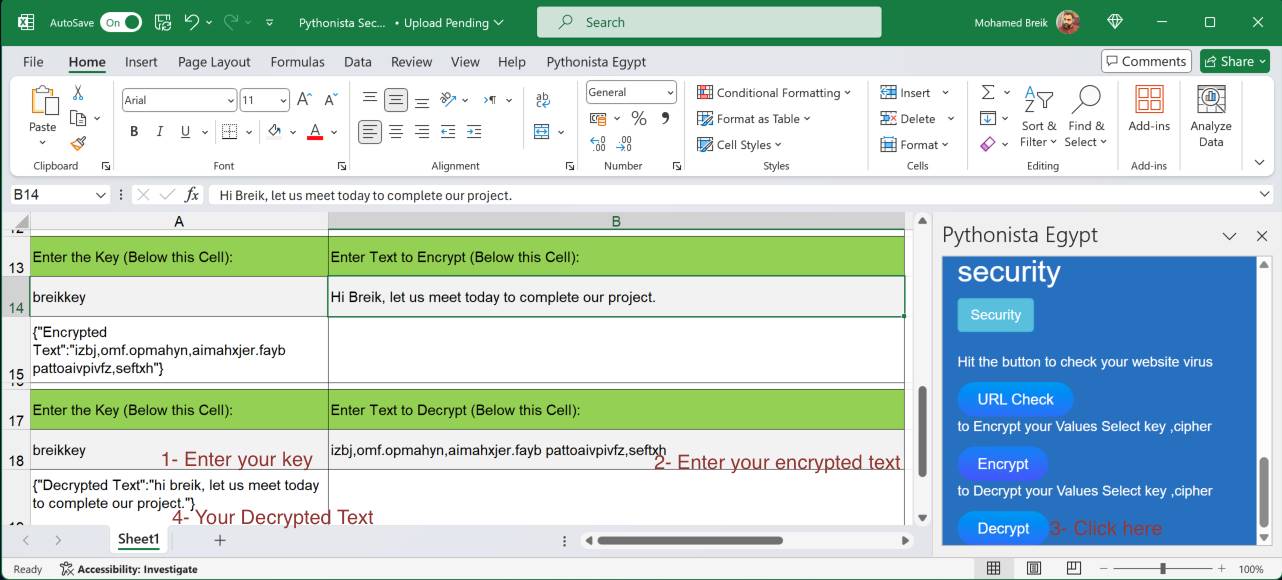 End-user development (EUD) is advancing to make technology accessible to both experts and non-experts, with tools that capture, represent, visualize, analyze, and test developer intent [3]. Integrating Python with Excel—a widely used tool in business and academia—offers a unique opportunity to democratize cybersecurity by providing advanced features in a familiar interface. This study aims to empower average end-users by integrating Python with Excel to deliver cybersecurity functionalities such as URL safety checks using the VirusTotal API and text encryption/decryption via the Vigenère Cipher.