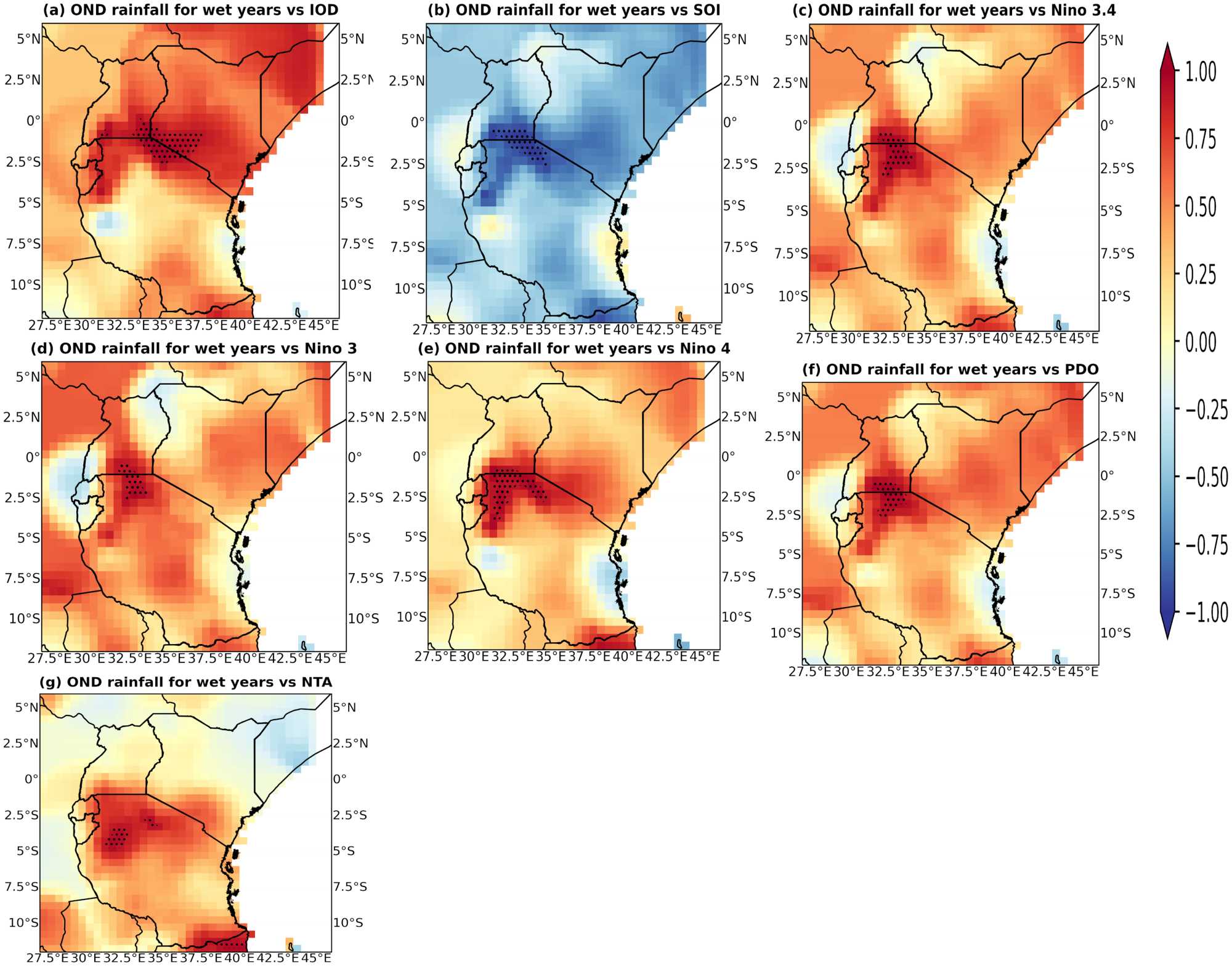Figure 4. The correlation between the OND seasonal rainfall vs different driving systems.