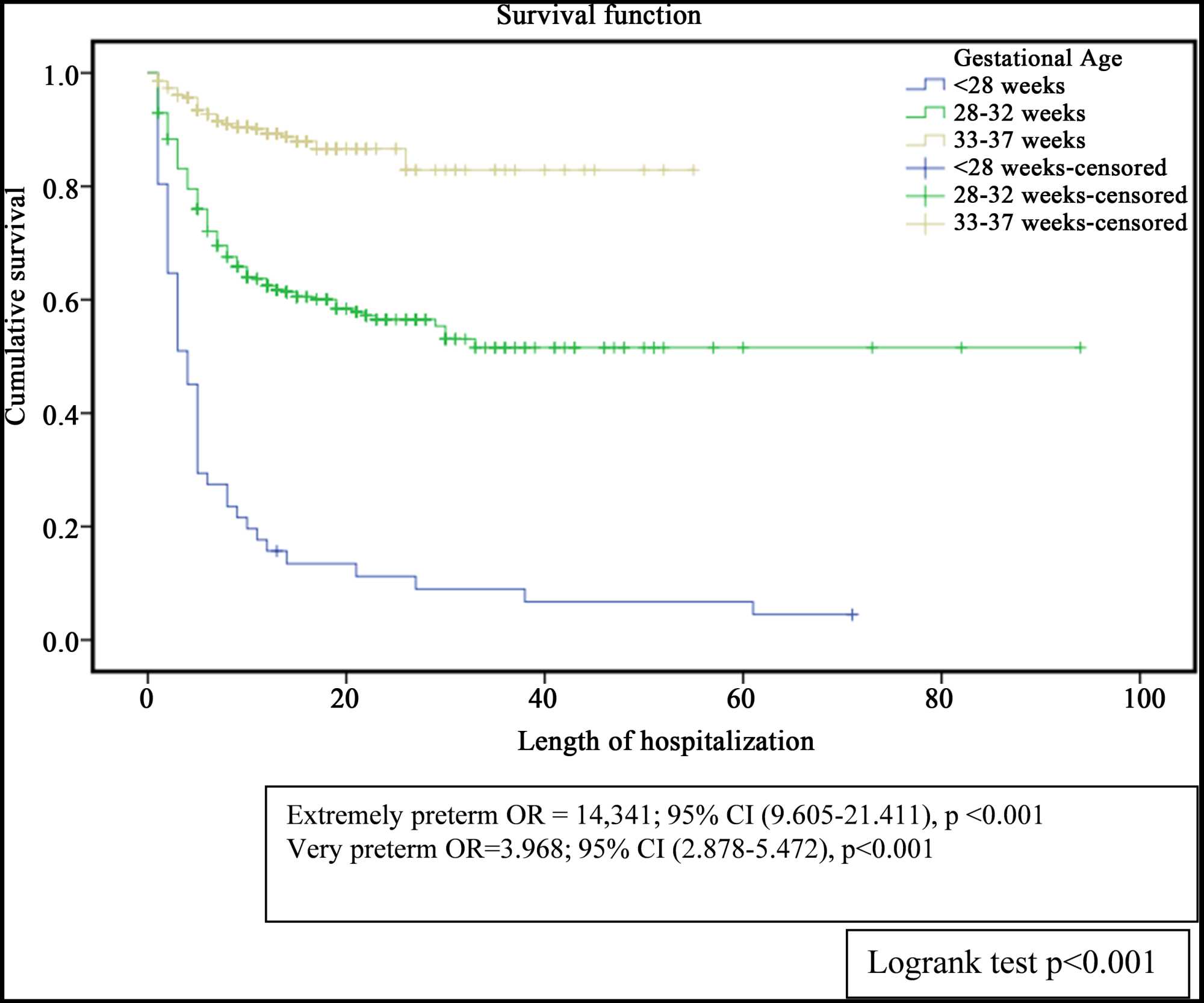 Our study found that gestational age ≤ 32 weeks was a predictor of a preterm death. The mortality rate increased as GA decreased. Ugochukwu et al. in Nigeria found a relatively high rate of survivors at 31 to 35 weeks and the majority of deaths at 24 to 29 weeks [22]. Similarly, Ntonya et al. in Malawi found a high mortality rate between 24 and 32 weeks and the majority of survivors between 33 and 37 weeks [26]. This situation could be explained by the lack of adequate medical equipment, in particular the accessibility to ventilators and especially by the unavailability of surfactant in our context.
