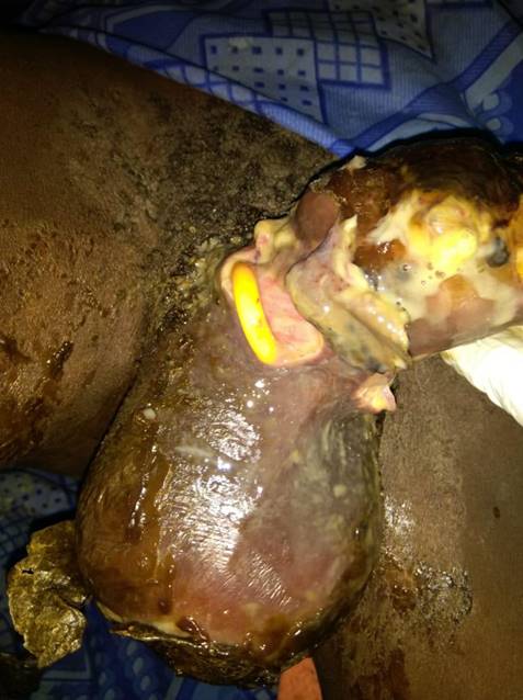 Figure 2. Scrotum and phallus skin necrosis in Fournier’s gangrene.