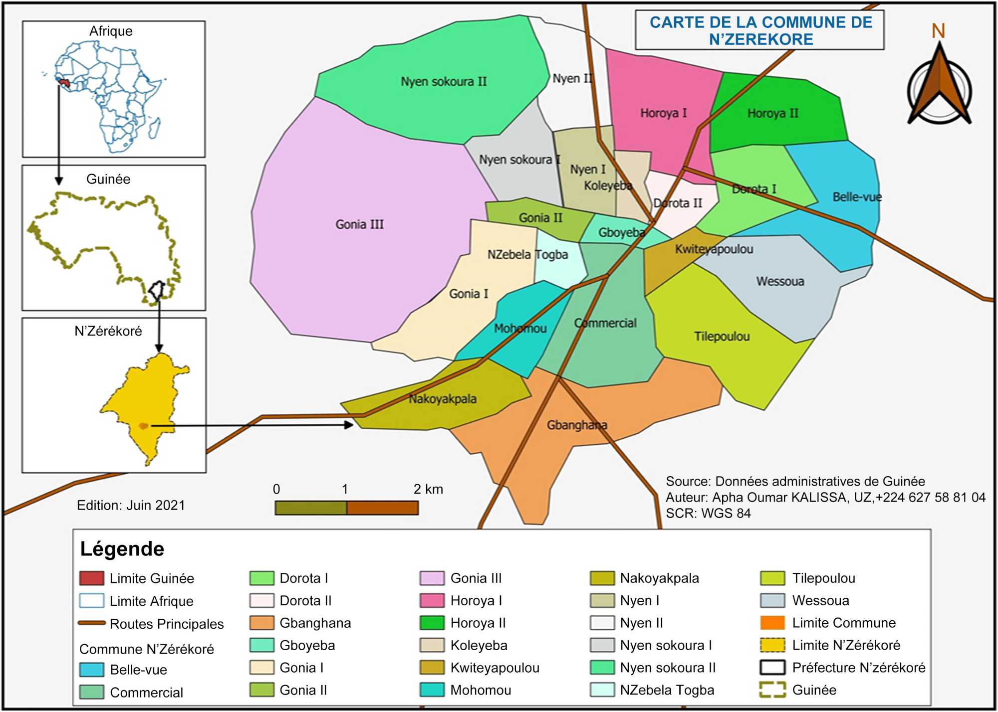 Figure 1. Map of the urban commune of N’Zérékoré.
