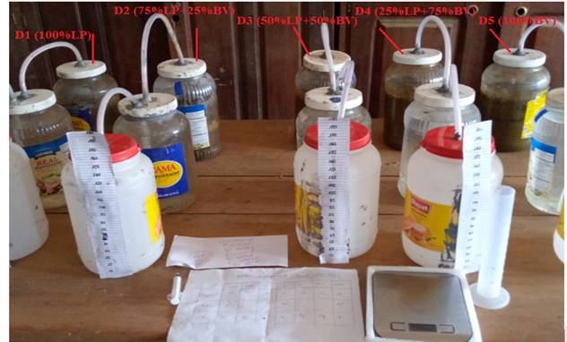 The experiment was carried out at the Physics laboratory of the University of N’Zérékoré from 4 to 25/12/2020. Loading of experimental digesters with substrates began on 06/12/2020. The loading of the experimental digesters with the substrates began on 06/12/2020, the preparation of which is done as follows.