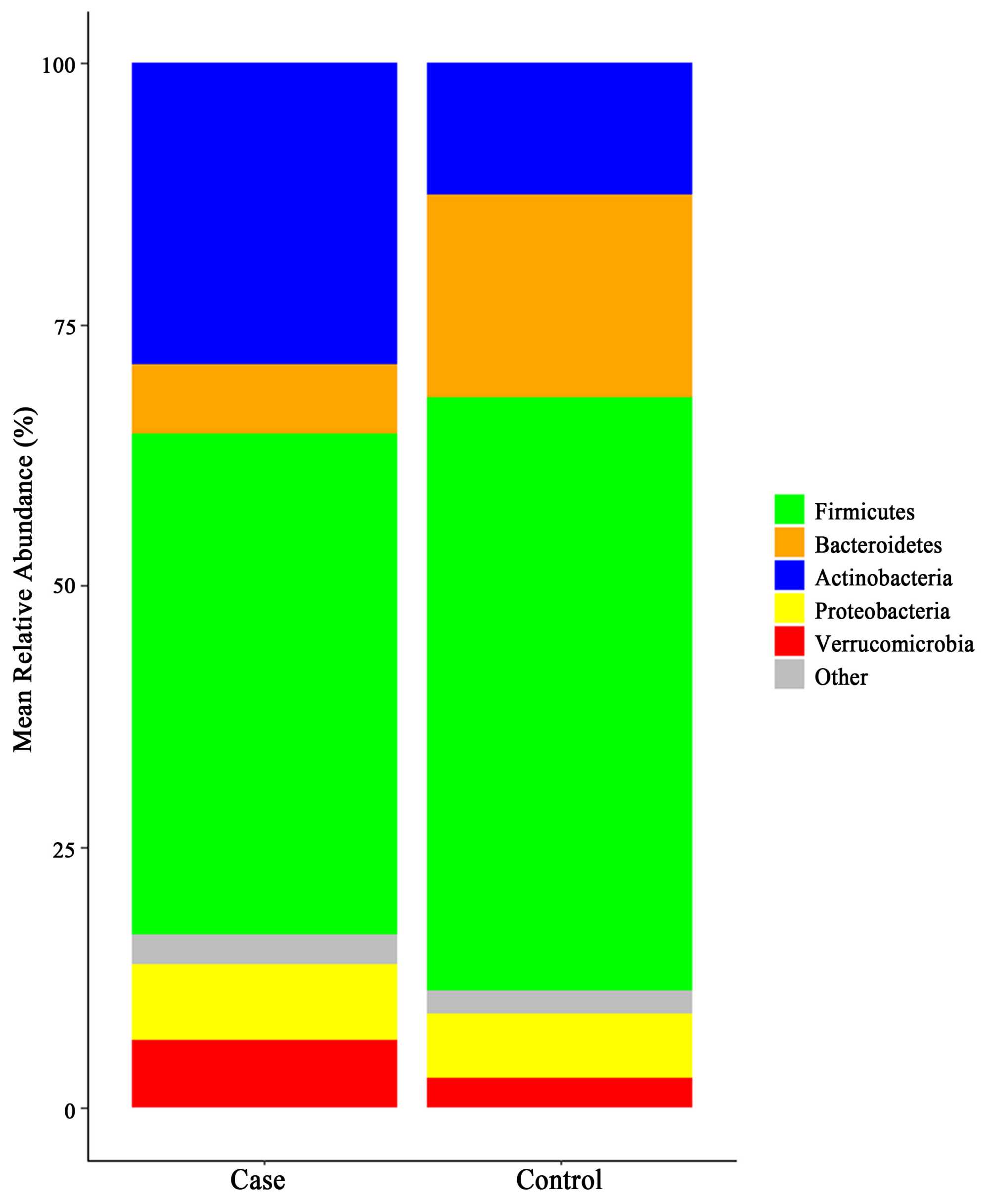 Figure 3. Comparison of the relative abundance of major phyla between cases and controls.