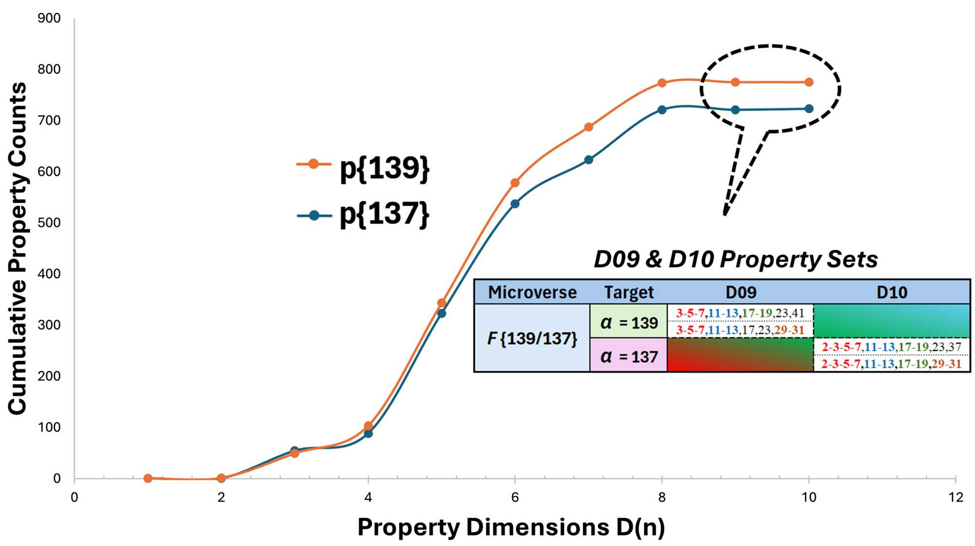 The cumulative property counts p{139} and p{137} for F{139/137} are shown in Figure 3.
