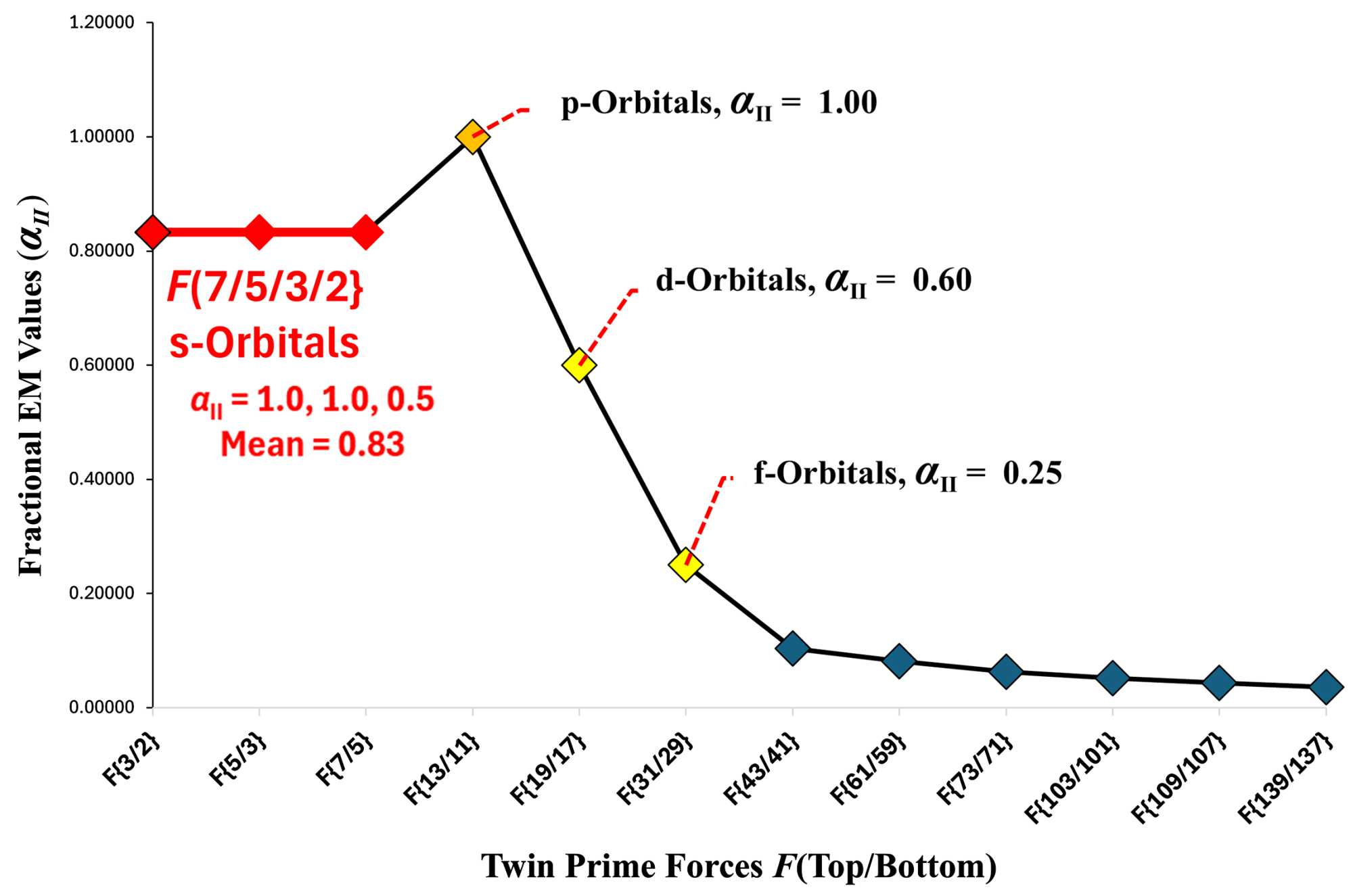 Figure 1 illustrates a plot of fractional (αII) EM forces distributed over the full range of twin prime pairs in this study.