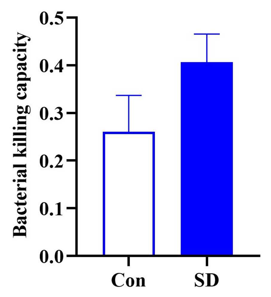 WBC did not differ between the Con and SD groups (t = −0.509, df = 20, P = 0.616) (Figure 2).
