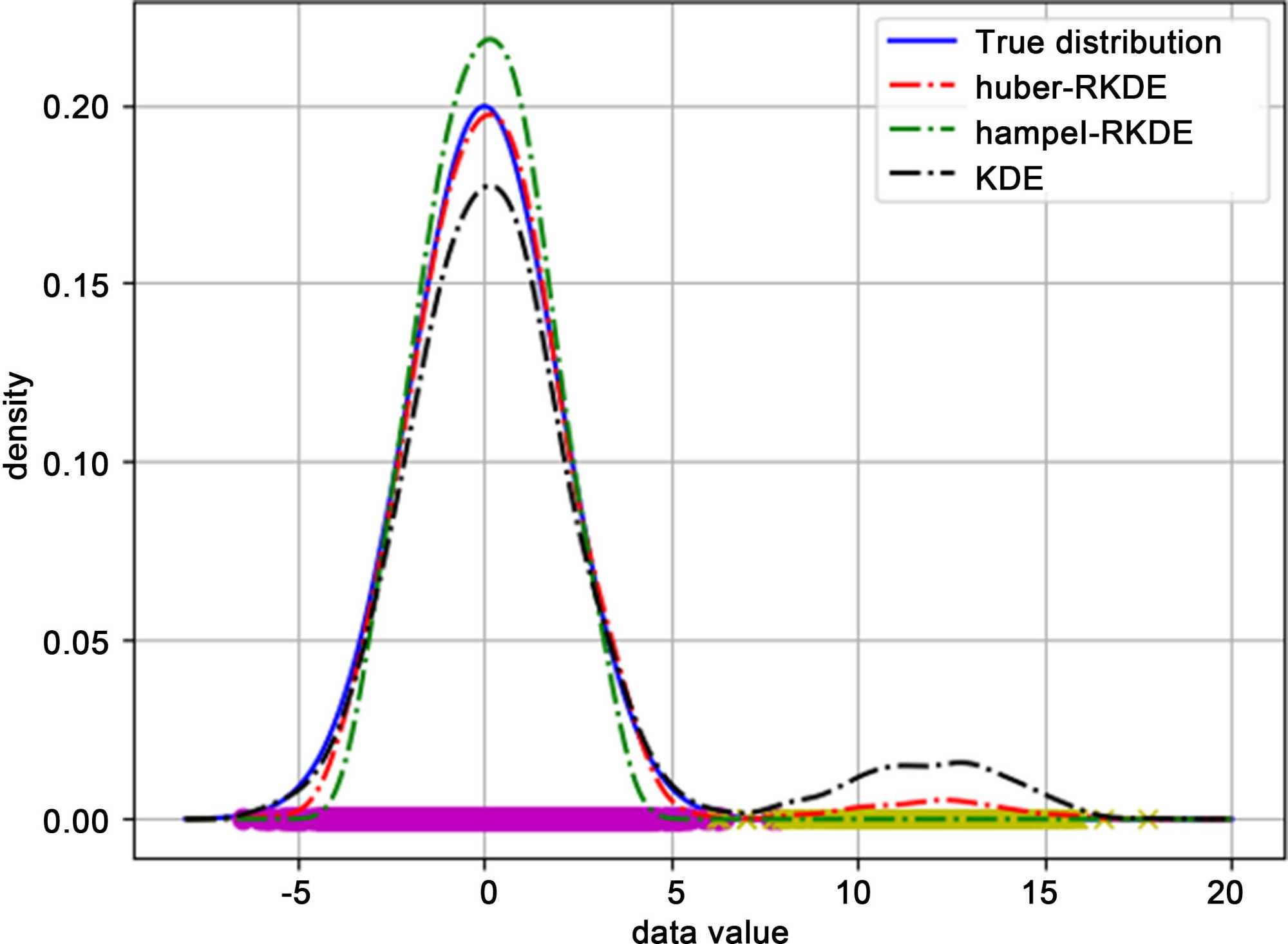 The ORKDE method demonstrates significant advantages over traditional kernel density estimation methods. Its robustness to outliers is achieved through the combination of M-estimation and a weighted kernel density estimator, resulting in more accurate density estimates. Additionally, the adaptive bandwidth selection facilitated by CCV and HHO enhances the estimator’s ability to adjust to the underlying data distribution, making it more versatile in real-world applications. In terms of applicability, the ORKDE method is designed to accommodate various data distributions, ensuring that the kernel density estimates accurately reflect the