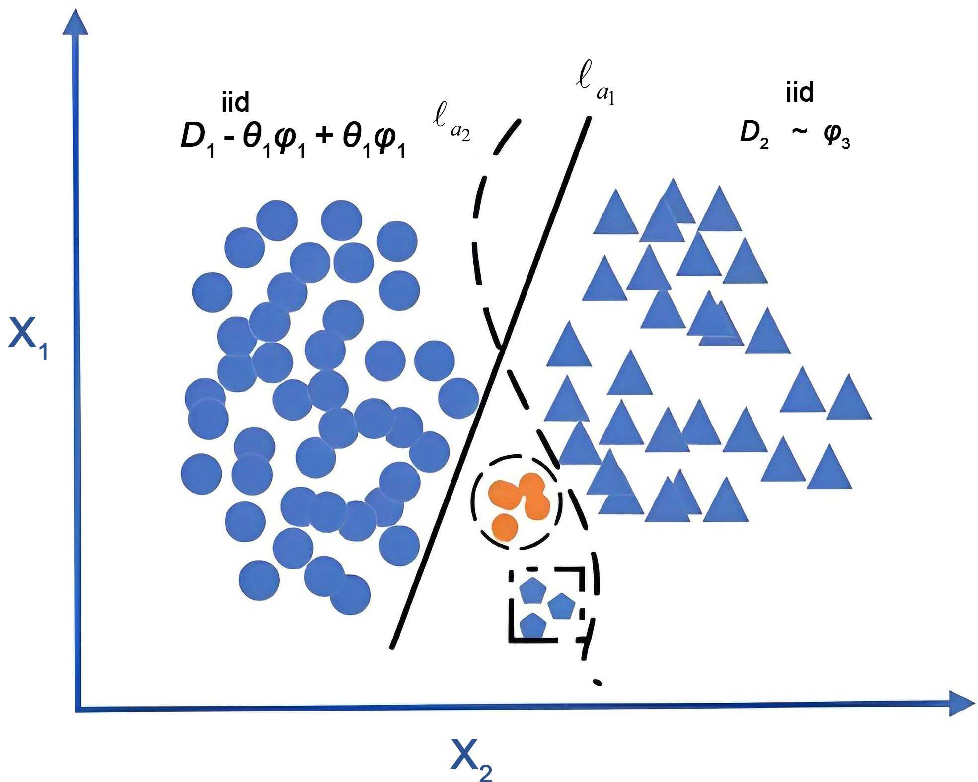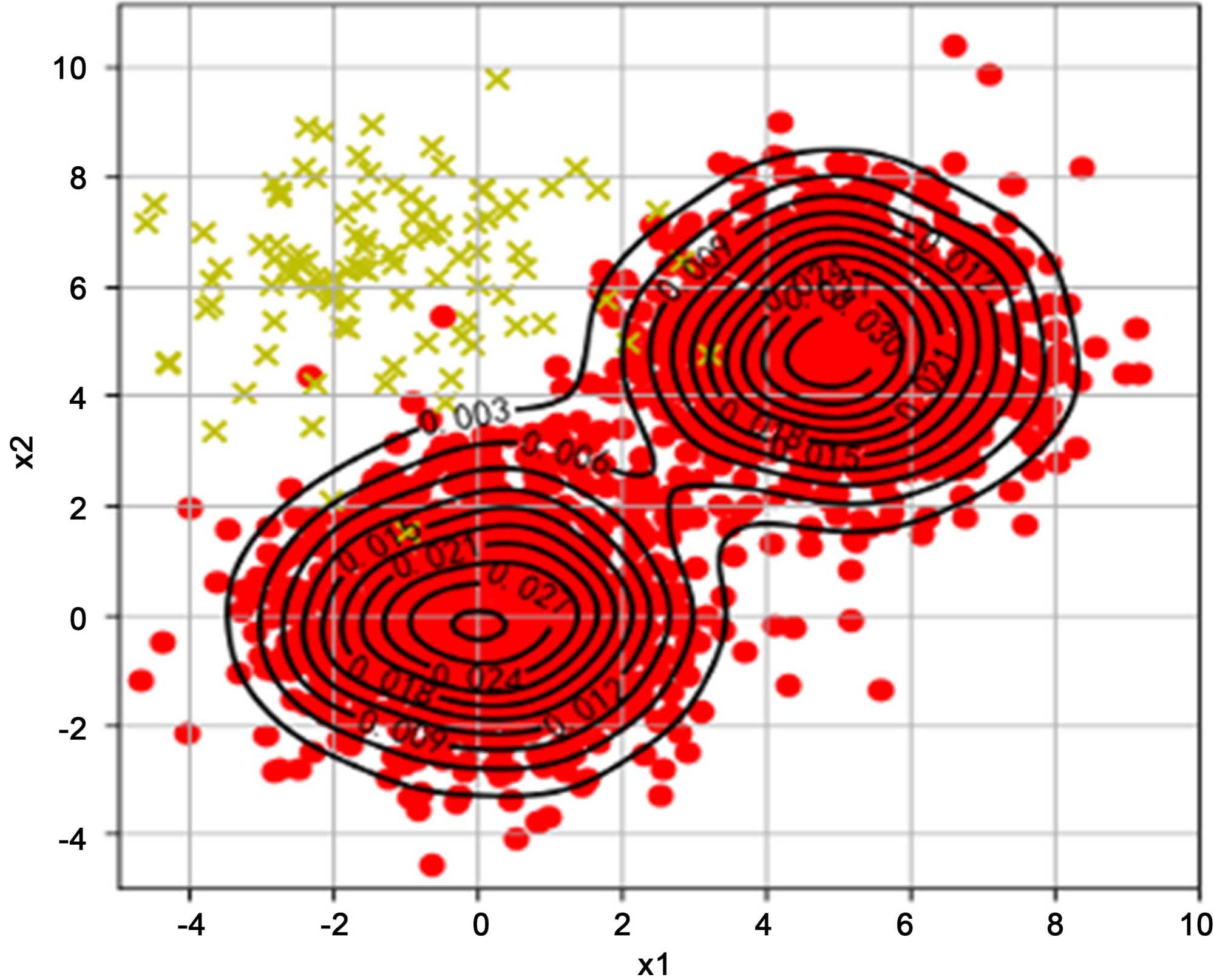 . The model erroneously identifies the test samples depicted as pentagons during the testing. Biassed Bayesian inference is often caused by the misrepresentation of sample decision boundaries caused by inaccurate distribution estimations. The key to fixing the problem is achieving precise density estimates, even when outlier data is included. Methods for estimating general probability distributions can be classified into parametric estimation [6] and non-parametric estimation [7]. Parametric estimation methods assume that data is drawn from a known probability distribution with unknown parameters, allowing the inference problem to be framed as a parametric solution. These techniques are widely used in statistical and machine-learning applications. However, making assumptions about the underlying data distribution can be challenging in real-world scenarios, often requiring substantial prior knowledge. This limitation hinders the ability to draw conclusive insights about the distribution’s structure and parameters [8]. In some cases, the mathematical representation of the problem is crucial for its resolution, particularly in outlier detection and robust estimation. Parametric methods may struggle when data deviates from the assumed distribution or is complex.