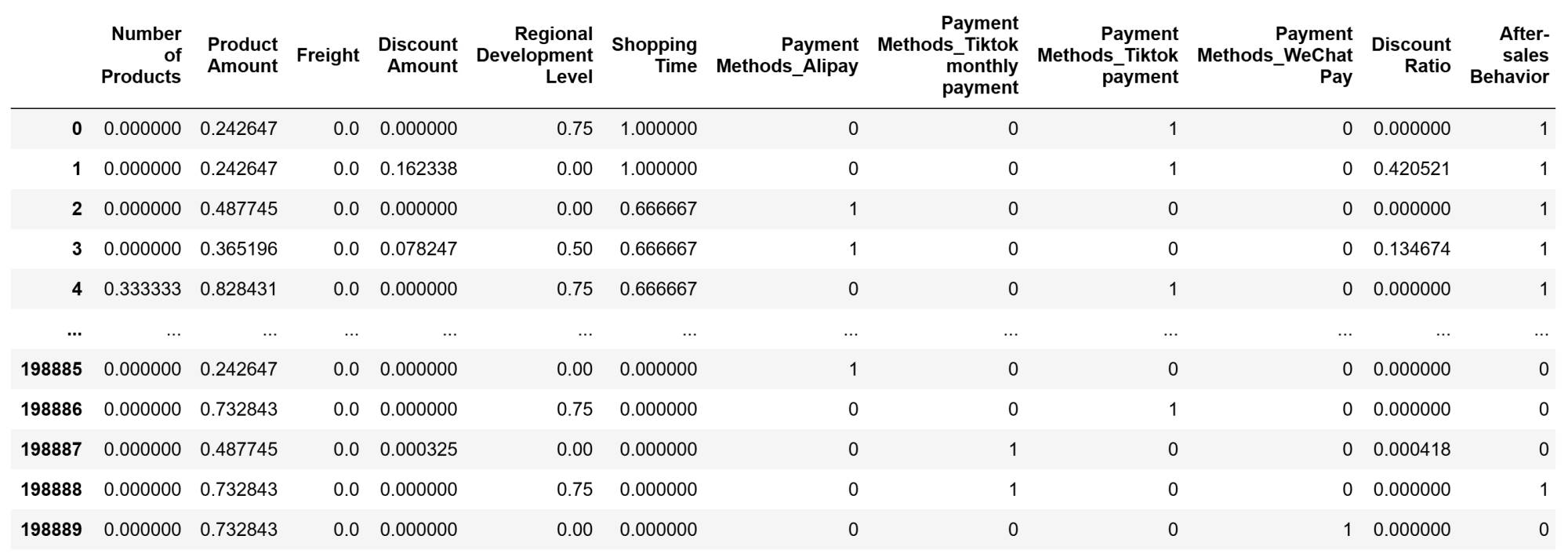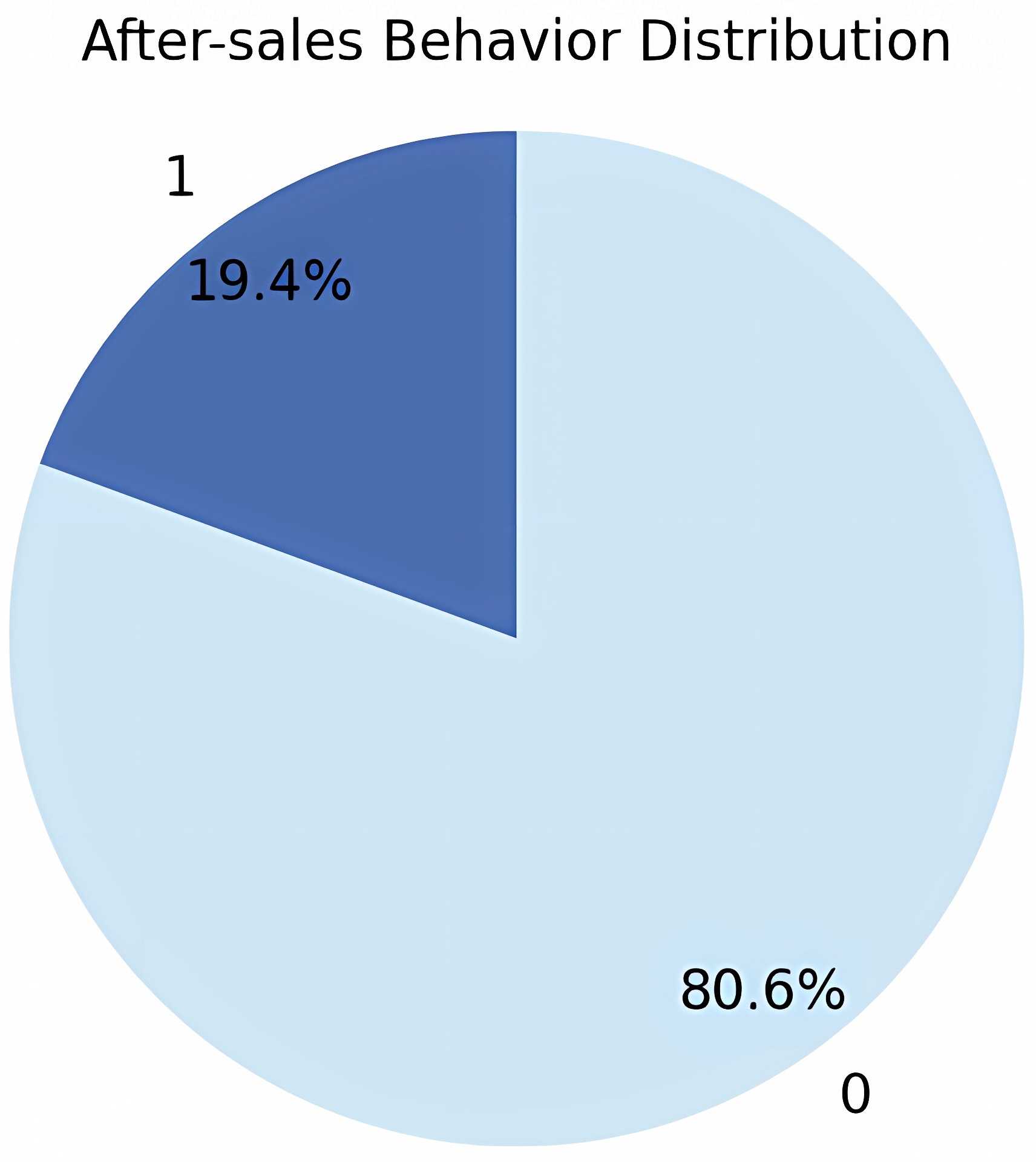 We have defined a target column named “After-sales Behavior” within our dataset to categorize orders. An entry of “1” indicates the presence of after-sales behavior, which includes activities such as returns, exchanges, and refunds. An entry of “0” signifies the absence of such behavior, suggesting that the order was completed without any subsequent actions, and the product was received as intended.