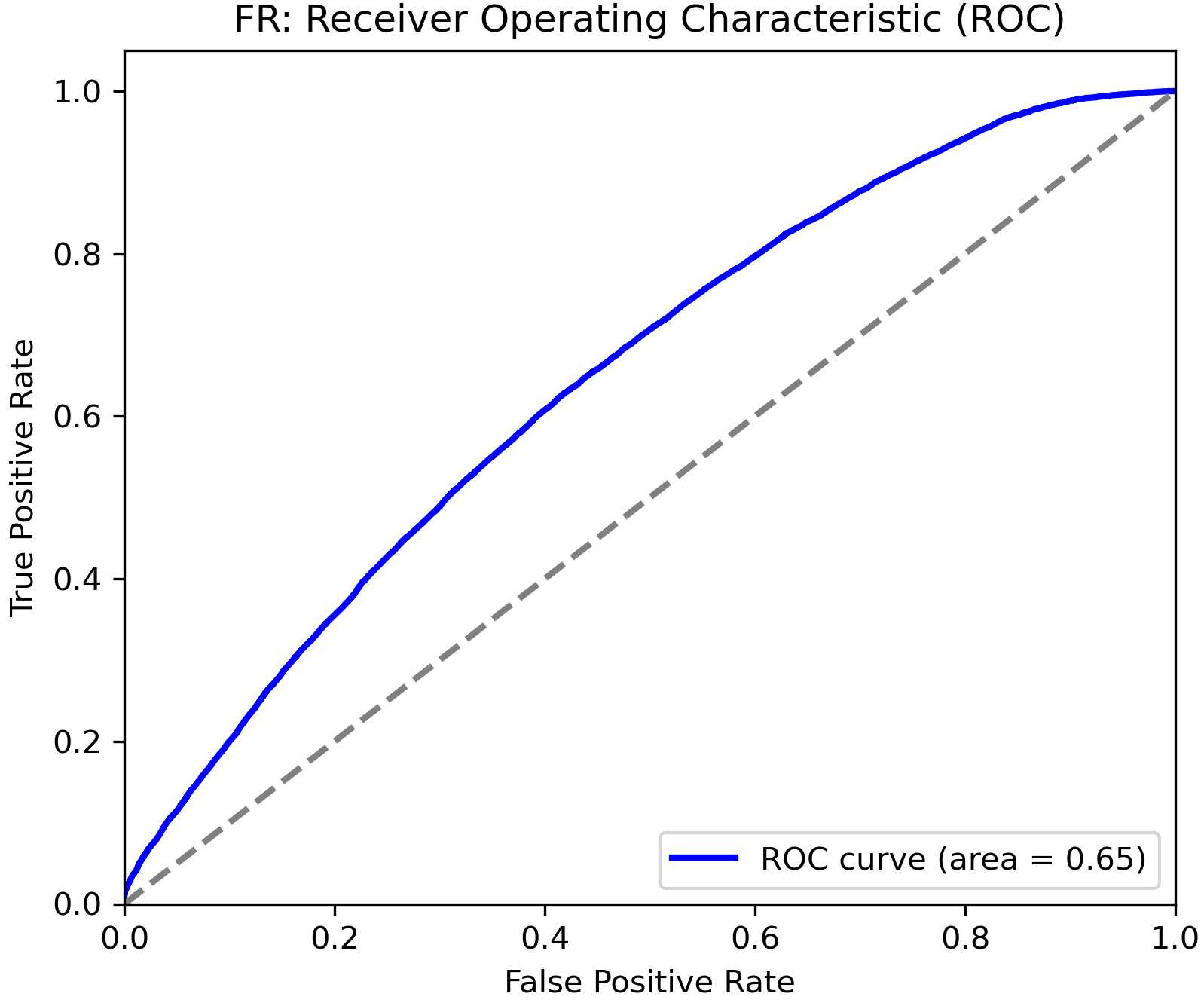 6) Receiver Operating Characteristic Curve (ROC): The ROC curve plots the relationship between the false positive rate (FPR) and the true positive rate (TPR), and the AUC value is the area under the ROC curve.
