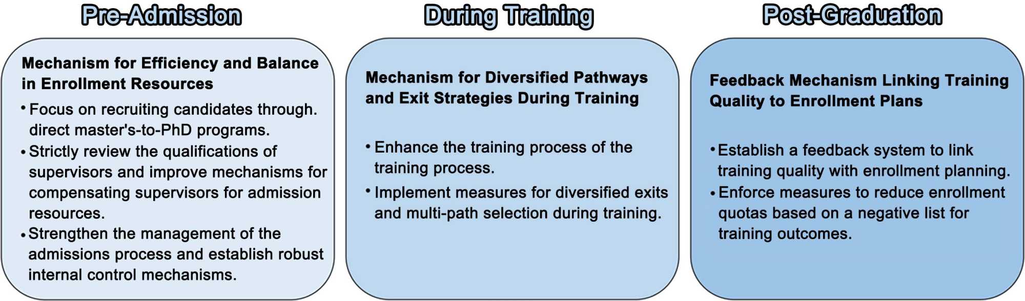The goal is to optimize the quality and structure of doctoral candidates. Key measures include prioritizing direct PhD and master’s-to-PhD candidates, limiting the number of part-time PhD students, and further promoting the master’s-to-PhD pathway as the main admission route.
