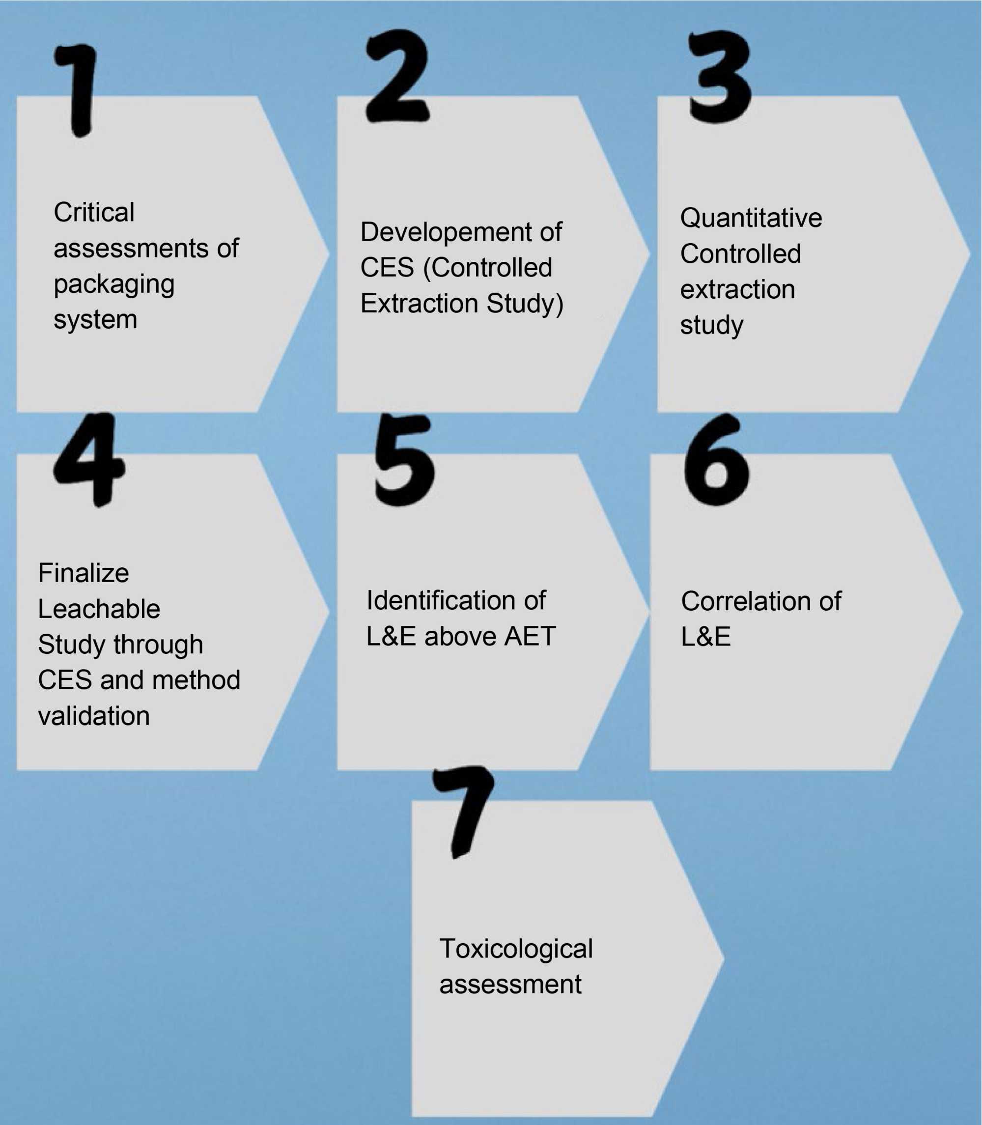 Extractables and leachables studies are generally conducted during the later stages of drug development. However, initiating the assessment of container closure systems at earlier stages can significantly enhance product safety and regulatory compliance [10]. Due to the inherent complexity of packaging systems, multiple testing steps are required to ensure compatibility between the drug product and its packaging [10].