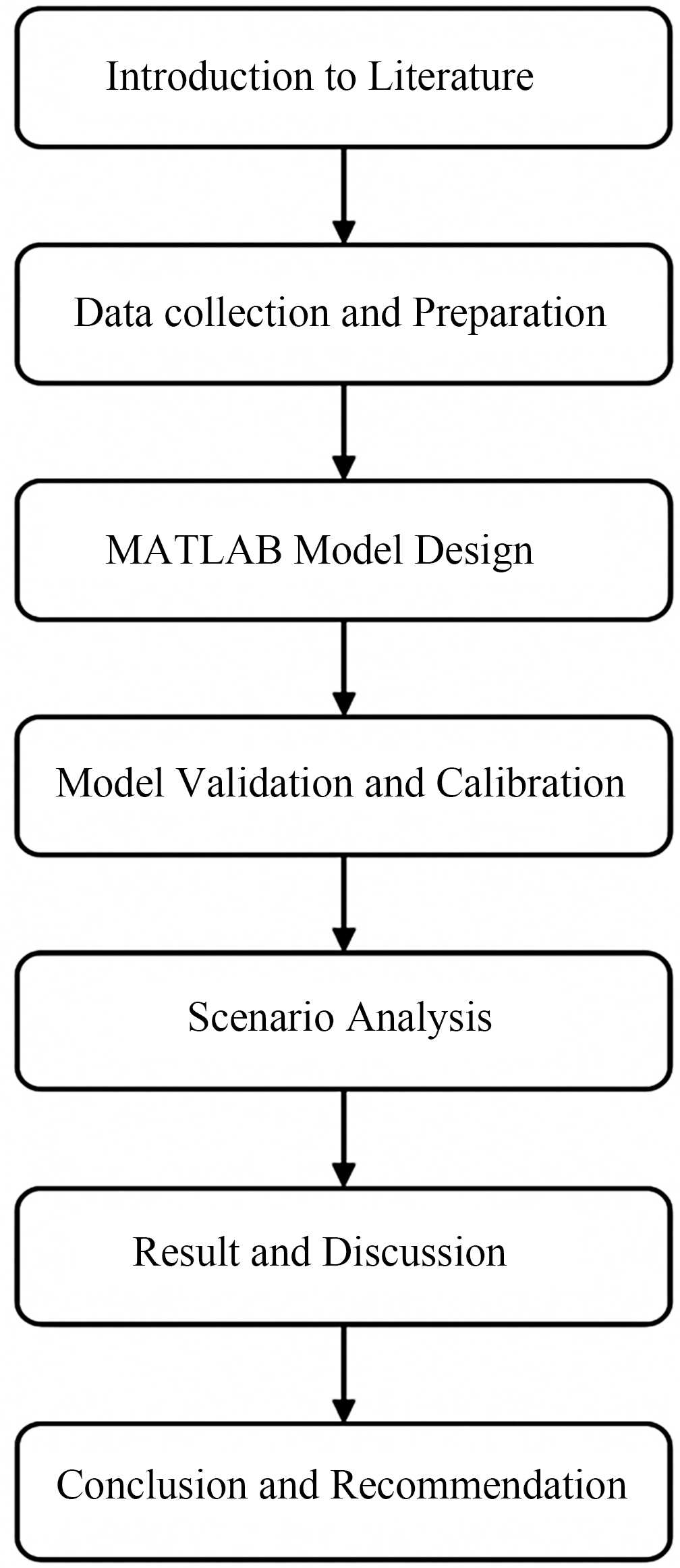 This section outlines the step-by-step approach for developing a MATLAB-based model to assess the energy recovery potential from municipal solid waste (MSW). The methodology involves waste characterization, model design, simulation of waste-to-energy (WTE) technologies, sensitivity analysis, and validation against real-world data.