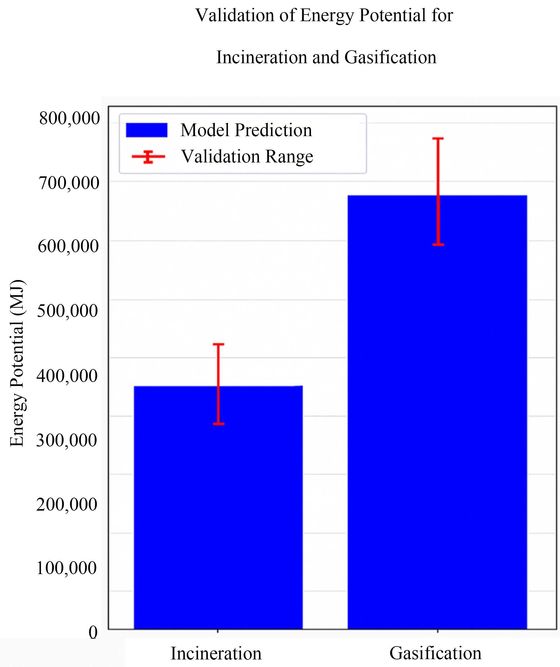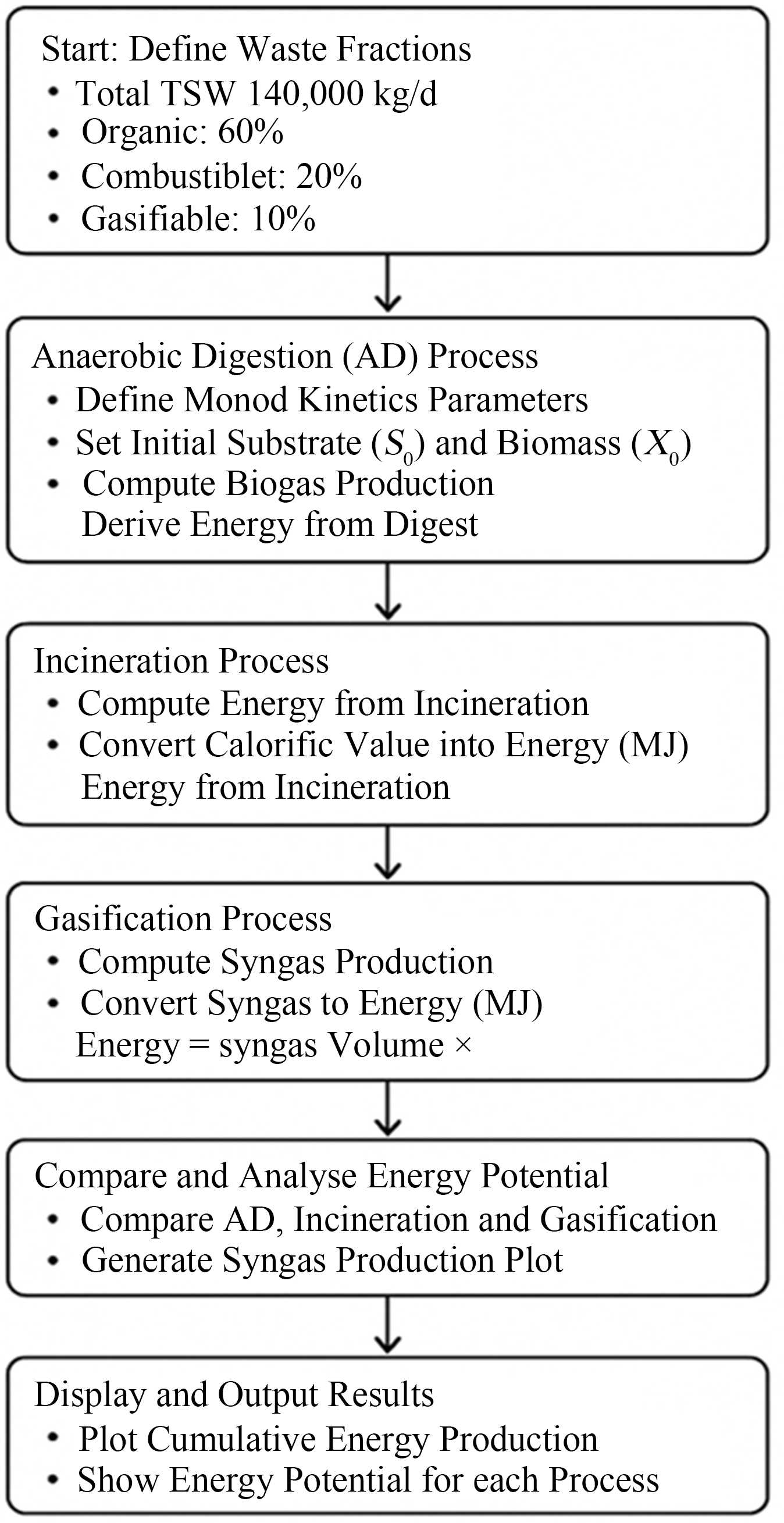 The incineration model calculates the energy potential from incineration using the calorific value of the combustible fraction of municipal solid wastes. Gasification model calculates the energy potential from gasification based on syngas yield and its energy content by using the gasifiable fractions of the municipal solid wastes.